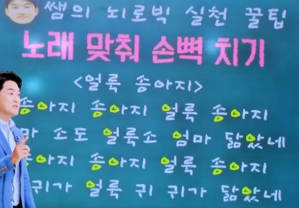 노래부르면서 손뼉치고 손과 발을 규칙을 정해